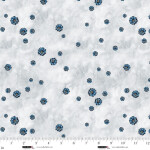 100% cotton. 42" wide. 1/4" to 3/4" varigated blue flowers on a pearl gray/blue mottled background.